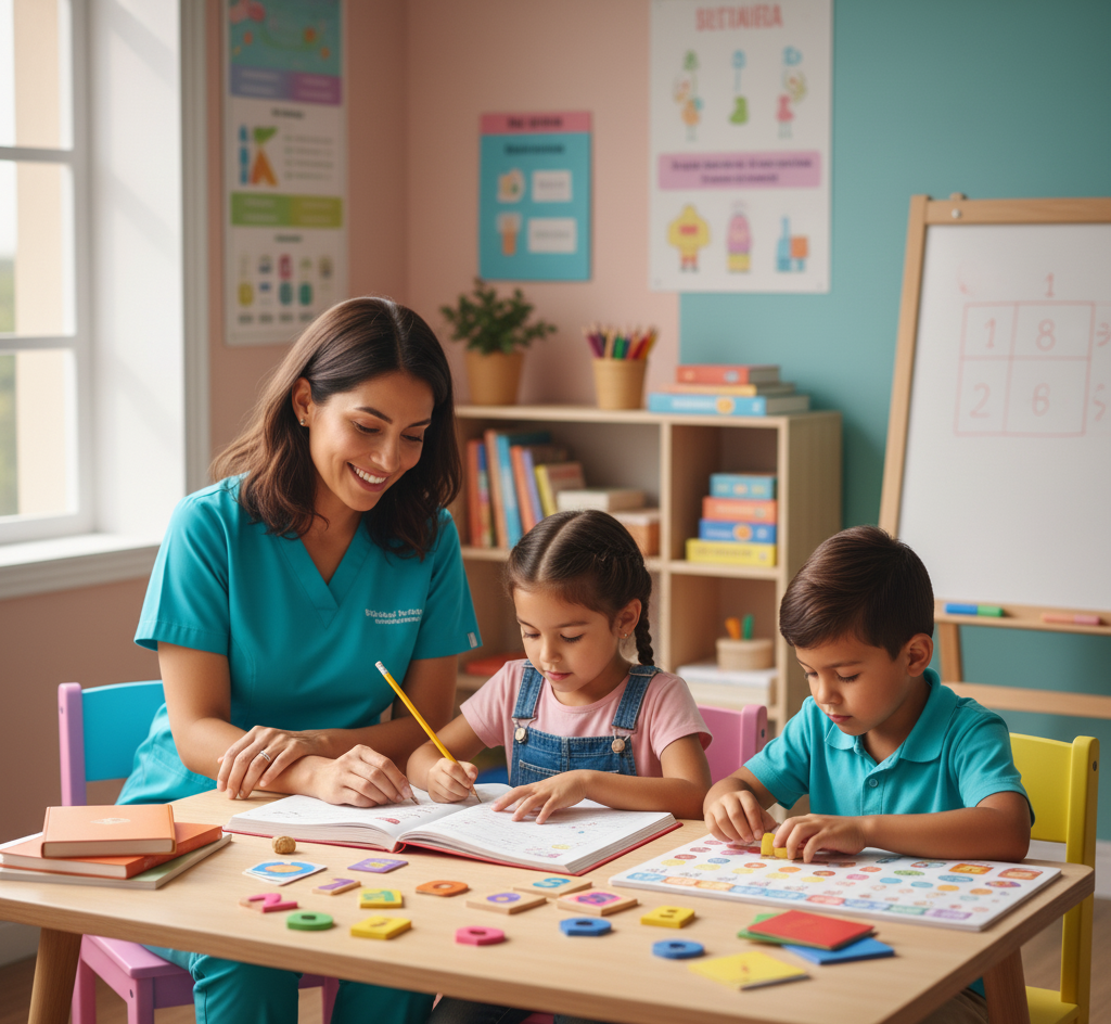 Identifica y aborda dificultades de aprendizaje, fortaleciendo lectura, escritura, cálculo y atención mediante estrategias adaptadas.